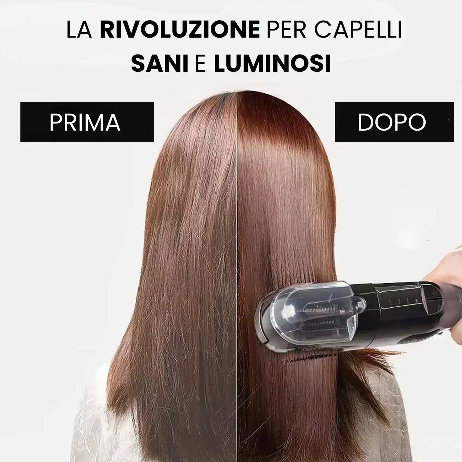 La ciocca risulta subito più liscia, uniforme e setosa, con un aspetto sano e luminoso già dopo il primo utilizzo.